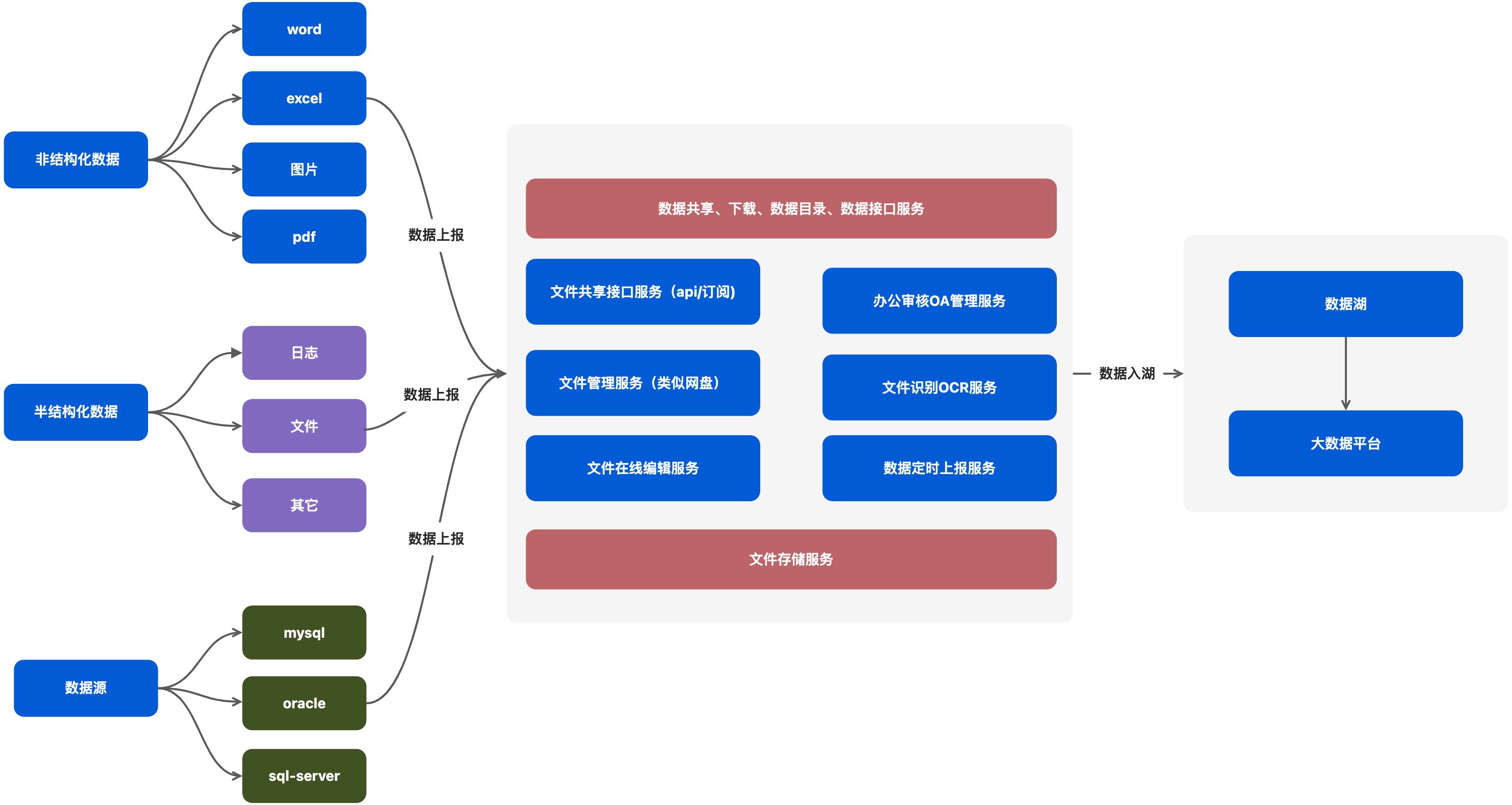 數據采集上報服務,主要針對于政務、個人、單位等通用型的通用數據采集上報平臺,用于數據入湖的方式之一。此處主要包括非結構化數據和半結構化數據、結構化數據等場景,同時便于收集多種數據來源,同時包含有資源目錄的規劃和劃分功能,是數字化平臺的前置應用,同時后期加上數據上鏈功能。